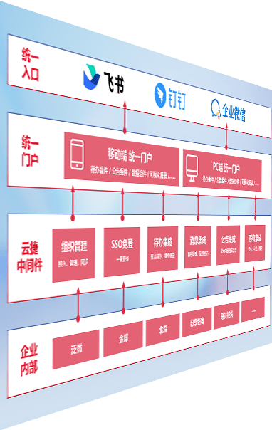 对协作平台提供支持服务,,,,支持企业应用与协作平台对接,,,包含组织同步、、消息集成、、待办集成等。。。。支持目前主流的协作平台:钉钉、、、、企微和飞书。。。。