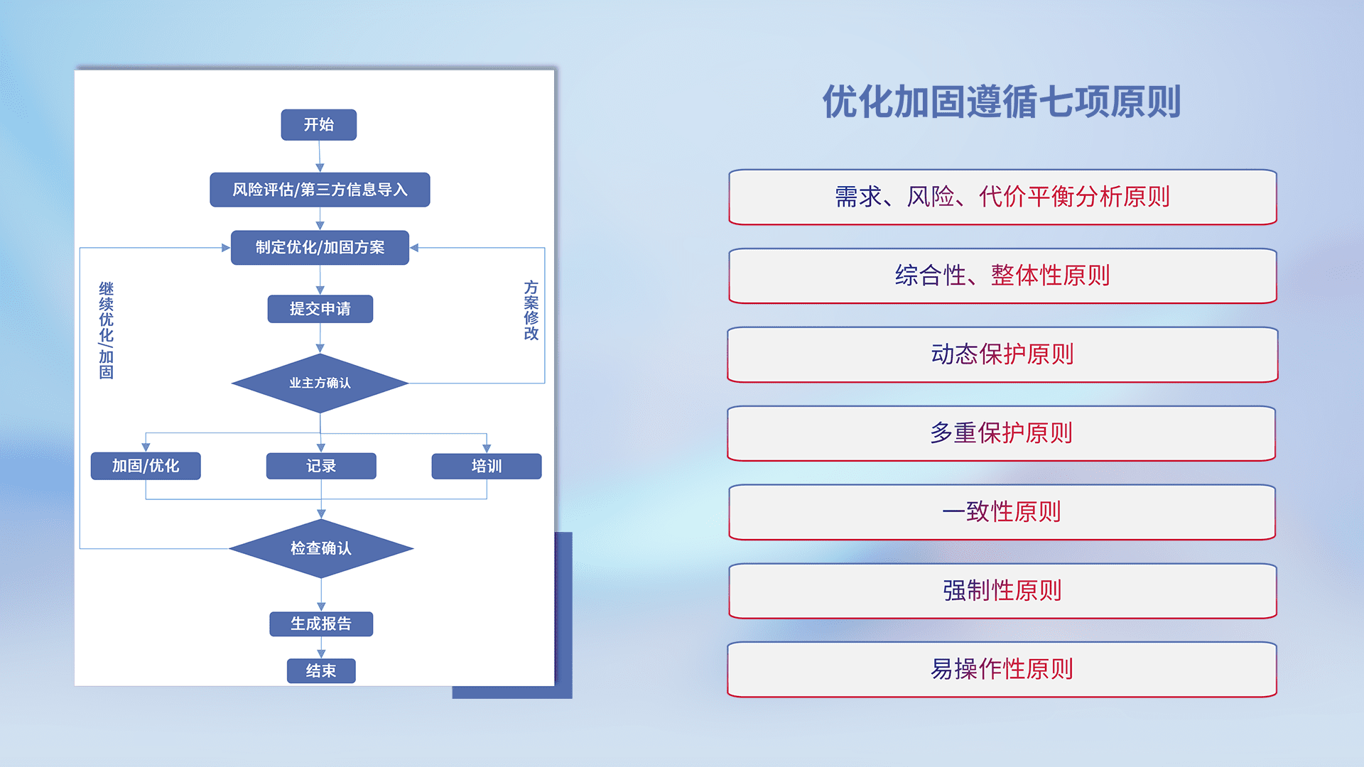 最大程度利用现有资产,,对评估发现的问题进行封堵与整改,,,防止漏洞被利用,,提升整体网络安全性,,,为客户带来高标准的优化加固服务。。